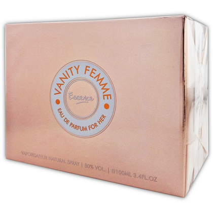 Vanity Femme Essence Armaf - це парфум для жінок, належить до групи ароматів Квіткові Фруктові. Верхні ноти: Біла фрезія, Апельсиновий колір, Персик та Гіркий апельсин; ноти серця: Жасмин, Магнолія та троянда; ноти бази: Амбра, Мускус та Ваніль.