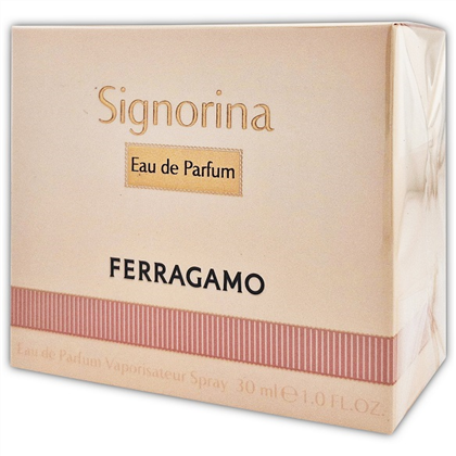 Signorina від Salvatore Ferragamo - це парфум для жінок, належить до групи ароматів Квіткові Фруктові. Signorina був випущений в 2011. Signorina був створений парфумером Sophie Labbe і Juliette Karagueuzoglou. Верхні ноти: Рожевий Перець і Чорна Смородина; ноти серця: Троянда, Півонія і Жасмин; ноти бази: Панакотта, Мускус і Пачулі.